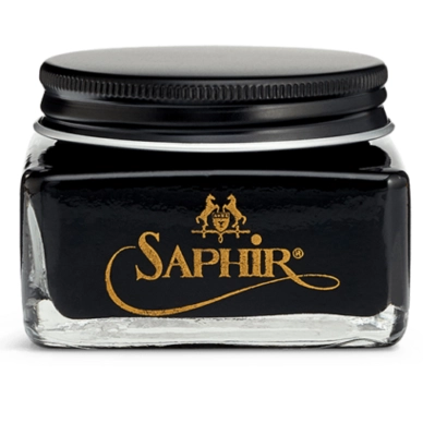 Cette crème d’entretien de Saphir a été spécialement développée pour le cuir de cheval (également appelé cuir Cordovan). Ce cuir très résistant aux intempéries et solide a une structure de fibre unique. Pour maintenir cette structure fibreuse et ne pas l’endommager, le cuir doit être entretenu avec des crèmes ne contenant pas de térébenthine. La crème est donc à base de cire d’abeille et, en plus de son effet nourrissant, offre également une protection contre le dessèchement. La crème d’entretien est proposée dans un bocal en verre d’une contenance de 75 ml.