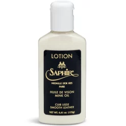 Saphir est l’une des marques les plus en vue dans le soin des chaussures. La marque est attachée à la qualité et ne travaille donc qu’avec les meilleurs ingrédients. Cette lotion d’entretien est particulièrement adaptée aux cuirs lisses et fins. La lotion non grasse est à base de cire d’abeille et d’huile de vison. Avec cette lotion, vous donnez au cuir un entretien complet pour lui redonner son aspect neuf. La lotion est disponible dans une bouteille de 125 ml.