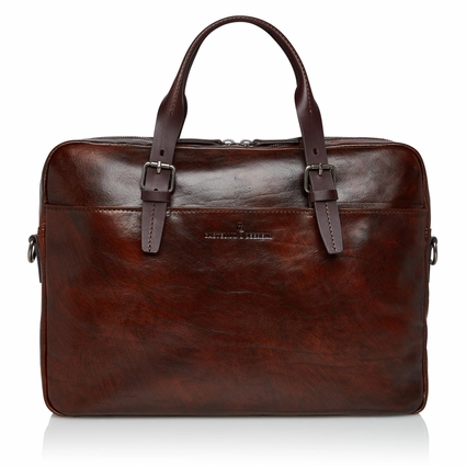 Avec ce sac pour ordinateur portable Rien RFID en cuir, vous aurez l’air élégant et professionnel. La sacoche pour ordinateur portable a une double fermeture éclair en métal et deux poignées fines. Le compartiment spécial pour ordinateur portable de 15,6 pouces est antichoc et contient également un compartiment spécial pour tablette. De plus, le sac dispose de compartiments spacieux pour un dossier A4, des documents et des accessoires pour ordinateur portable. Votre banque, vos cartes de crédit et votre passeport sont protégés contre l’écrémage dans la poche zippée RFID spéciale. Vous pouvez également porter le sac sur votre épaule grâce à la bandoulière amovible. La sangle trolley est destinée à attacher facilement le sac à votre trolley. Le sac est fait de cuir de taureau tanné végétal et est teint à la main. Cela met en valeur les motifs de grain naturel du cuir et donne à chaque sac un look unique !